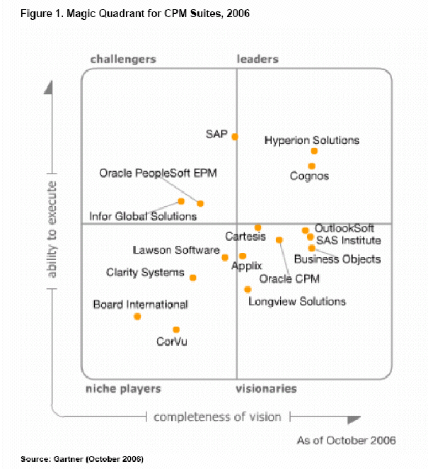 על פי גרטנר, תחום ה- Corporate Performance Management נמצא בדרגת החשיבות הגבוהה ביותר עבור ארגונים השוקלים ליישם יישומים אנליטיים.