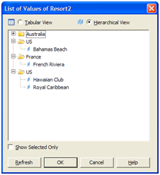 - אם תרצו להציג את הרשימה בצורה היררכית (במקרה שיותר משדה אחד מוצג) , כלומר הערכים מאוחסנים בתיקיות אב, יש להקיש על Hierarchical display. דוגמא:
