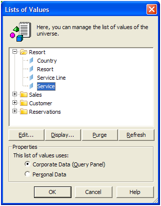לדוגמא, אם השדה\טבלה הוא : Resort.resort רשימת הערכים הבסיסית של השדה \טבלה היא: