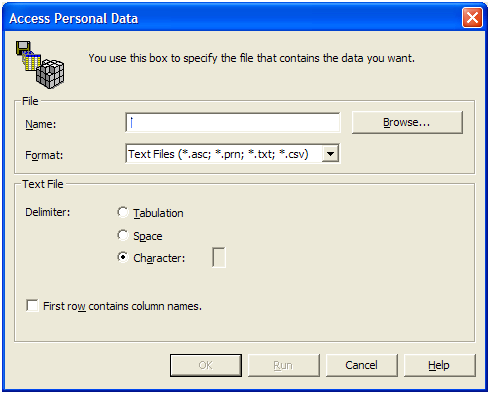 - Personal Data – רשימת ערכים שמקורה בקבצים חיצונים (כגון קבצי אקסל). במקרה שנבחר ברשימה זאת, נראה את ההודעה הבאה: