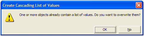 ישנם מצבים רבים בהם רשימת הערכים עלולה להיות ארוכה מאד, ושכך, מסורבלת לשימוש. שיטה שתקל עלינו את העבודה, נקראת Cascading list of values. לפי שיטה זאת, אנו יוצרים רשימת ערכים התלויה בשאילתא אחרת.