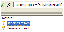 6. בחלק הWhere נכניס את הגדרת הפילטר. הפילטר מוגדר באמצעות משפט שיופיע בחלק הWhere של הSQL. משפט זה חייב להיות בוליאני, כלומר ניתן לקבוע באמצעותו אמת או שקר. חלק זה ניתן לכתוב באופן ידני או להשתמש בעורך על ידי הקשה על .   הקשה על אובייקט מסויים תכניס את הSQL של האובייקט לתוך הפילטר.  .