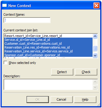 2. תחת Current context join list, יש לבחור את הjoins בcontext. אפשר לבחור מספר contexts ללא שימוש בCtrl.