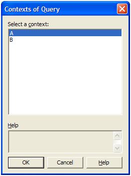 אם ניקח אובייקטים מ2 טבלאות אשר יש לפחות שני מסלולים אפשריים שנמצאים בשני contexts שונים (כמו לדוגמא CßàE או  IßàA  ) תהיה לכאורה בעיה, כי הרי באיזה מסלול הBO יבחר, האם דרך Context A או שמא Context B ? במקרה זה, הBO יאלץ לשאול את המשתמש לפי איזה context הוא רוצה שיריץ את השאילתא.