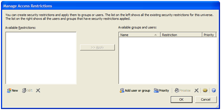 - להכנס למסך "Manage access restrictions" ע"י toolsà manage securityàmanage access restrictions. (דרך אלטנרנטיבית: לחיץ