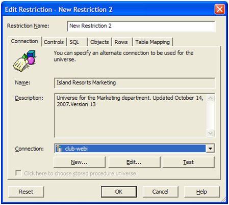 - בלשונית Connection, אנו קובעים את הconnection לעולם. הדבר דומה למסך הconnection . כך נוכל לקבוע connection אחר לקבוצה מסויימת. לדוגמא, נוכל להגדיר את הconnection לDB הטסט, לקבוצה של משתמשים העוסקים בבדיקות.