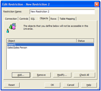 בשורה הראשונה הגבלנו את כל האובייקטים מתיקיית Resort. בשורה השניה, הגבלנו את אובייקט Sales Person מתיקיית Sales. - אם נרצה למחוק הרשאה לאחר מכן, נקיש על