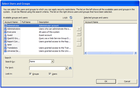 a. בחלק העליון השמאלי של המסך , נראה את רשימת המשתמשים\קבוצות (Available users and groups). אם נרצה לרענן את הרשימה, נקיש על