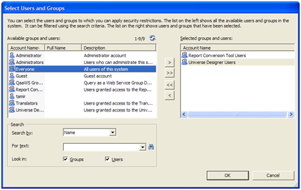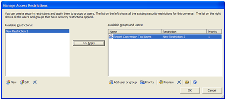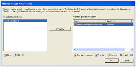f. כדי להחיל את ההרשאה על הקבוצה (במקרה זה New restriction2 על Report conversion Tool users) יש להקיש