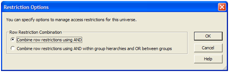בחירה על האפשרות הראשונה, combine row restriction using AND , תגרום לכך שכאשר יופעלו שני תנאים או יותר היחס בין שני המשפטים בחלק הwhere יהיה AND.