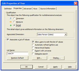 - לאחר מכן, יש לשייך את הdetail לDimension על ידי בחירה בAssociated dimension.