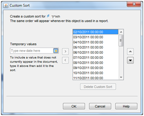 מאפשר מיון מותאם אישית באמצעות החץ העליון והחץ התחתון מצד ימין.