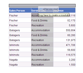 2. יש לגרור את המימד אותו אנו רוצים שיהיה בציר הX לחלקו העליון של הטבלה, עד שנראה את ההודעה: "Drop here to create a crosstab".