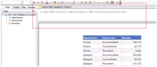 פילטר נוסף הקיים הוא הFilter Pane המאפשר כתיבת פילטר ידני. כמו כן, פילטר זה מתאר כל מה שקיים (בהקשר של פילטרים) בנקודת זמן זאת בדוח. פילטר זה, דומה באופנים רבים לGlobal Filter הקיים בגרסא הישנה של הBO.
