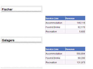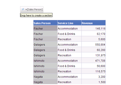 דרך נוספת לחלק את הדוח למקטעים היא באמצעות חלוקה לSection. ההבדל המהותי בין שיטה זאת לבין Breaks היא שBreaks שוברת טבלה לחלקים בעוד שSection שובר את הדוח. במידה וישנה רק טבלה בדוח, ההבדל מעבר להבדל ויזואלי הוא מינורי, אך במידה וישנם עוד אובייקטים בדוח, כגון מספר טבלאות, גרפים וכו'. ההבדל נהפך למשמעותי ביותר.