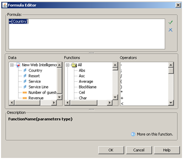 בהרבה מקרים, אנו צריכים להשתמש בנוסחאות מורכבות יותר. למזלנו הBusiness Objects מאפשר לנו ליצור נוסחאות מאד מורכבות.