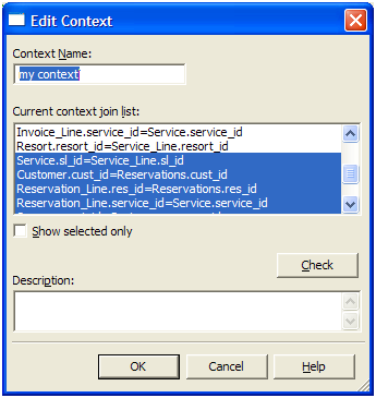2. תחת Current context join list, יש לבחור את הjoins בcontext. אפשר לבחור מספר contexts ללא שימוש בCtrl.